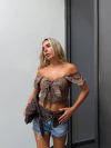 Descubrite en el Top Mediterráneo, confeccionado en delicado broderie y puntillas que realzan su elegancia. Sus breteles volados y el moño en el frente aportan un toque femenino y romántico, mientras que el elástico en la espalda garantiza comodidad y ajuste perfecto. Disponible en visón, ideal para combinar con tus prendas favoritas y lucir un estilo único y sofisticado.
